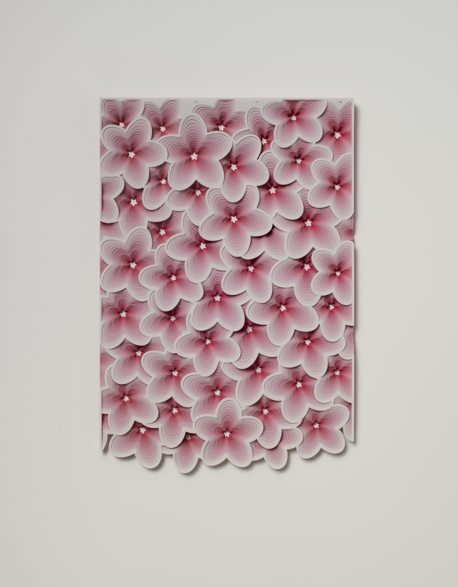 The Diviner Series, a solo exhibition of new constructed drawings and prints by Dodd Professor Imi Hwangbo, will be shown at the Ellen Miller Gallery in Boston from November 28 – December 21, 2024. Hwangbo’s delicate reliefs carve two dimensional patterns, creating lines with edges, and shapes with negative space. Trained as a sculptor, Hwangbo’s practice combines image, object, and material. Her work recalls the traditional Korean art of pojagi: four-cornered wrapping cloths embroidered with patterns which reference Korean folk beliefs. Hwangbo’s patterns begin as hand-drawn shapes, which she develops with layers of cut paper. The completed artworks create depth with layered apertures and overlapping edges. The Diviner Series explores the boundaries between the real and imagined. Ever-present is the concept of infinity, implicit in her repeating patterns.