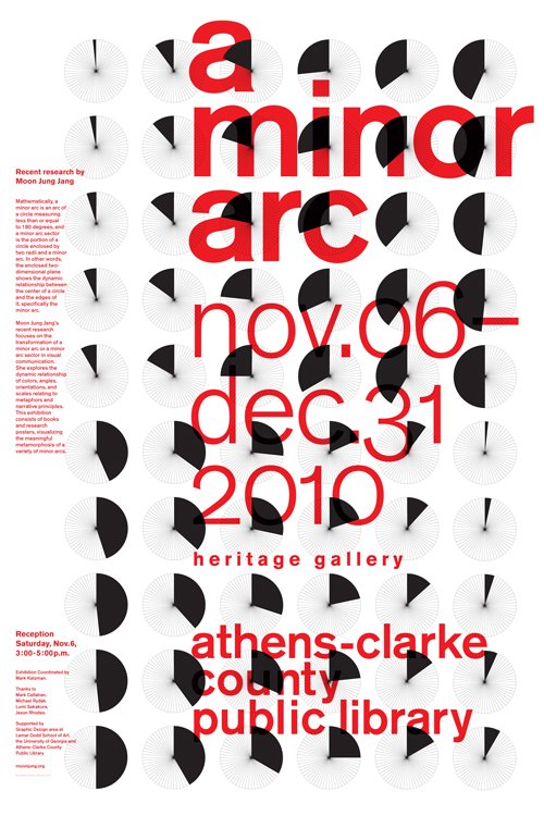 Moon Jung Jang is a graphic designer, visual artist, and teacher. Her primary research involves narrative systems such as Multiple Narratives in Visual Form, Polyhedralness as Multiple Narratives, and Color Value in Space-Time and promotion design for socio-cultural events and art exhibitions such as symbol, logotype, book, and poster design. Her work has been presented in solo exhibitions, Disturbed Boundaries (2009), A Minor Arc (2010), and % (2012). Her graphic design has appeared internationally and nationally in many exhibitions such as The Tranava Poster Triennial (Slovakia); The International Poster Triennial (Japan); The International Poster and Graphic Arts Festival of Chaumont (France); The Golden Bee Moscow International Biennale of Graphic Design; Print Regional Annual Competition (USA); Annual UCDA Design (USA); 365: AIGA (New York, USA); AIGA SEED Award GALA (Atlanta, USA). She is an assistant professor of graphic design at the University of Georgia, Lamar Dodd School of Art, in Athens, Georgia (USA).