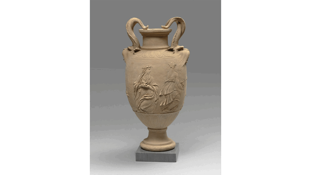 Image: Claude Michel, called Clodion (1738-1814), Vase avec décor de cinq femmes faisant un sacrifice (Vase with Five Women Making a Sacrifice), 1766. Terracotta, 38.6 cm. Paris, Musée du Louvre