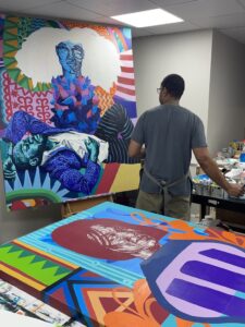 The exhibition features work by acclaimed Atlanta-based printmaker Jamaal Barber, known for his intricately layered relief prints that examine Black identity, memory, and community. Barber’s work has been exhibited nationally and featured in numerous publications and collections.