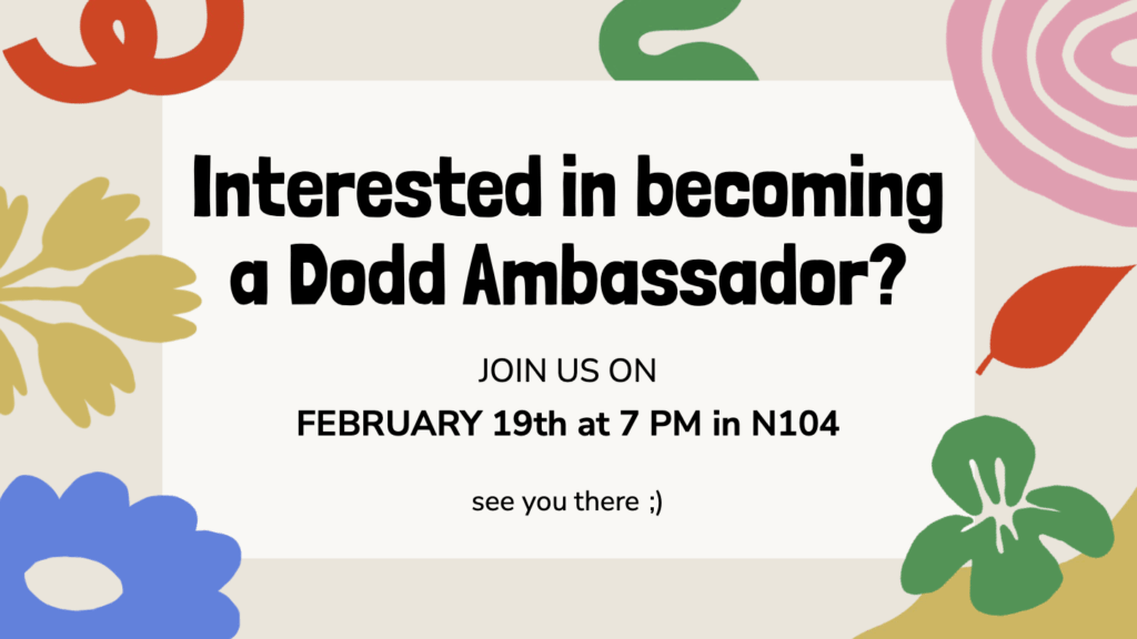 Are you passionate about the Dodd and interested in representing the school? If so, join the Dodd Ambassadors for an interest meeting at 7pm in N104. We hope to see you there!