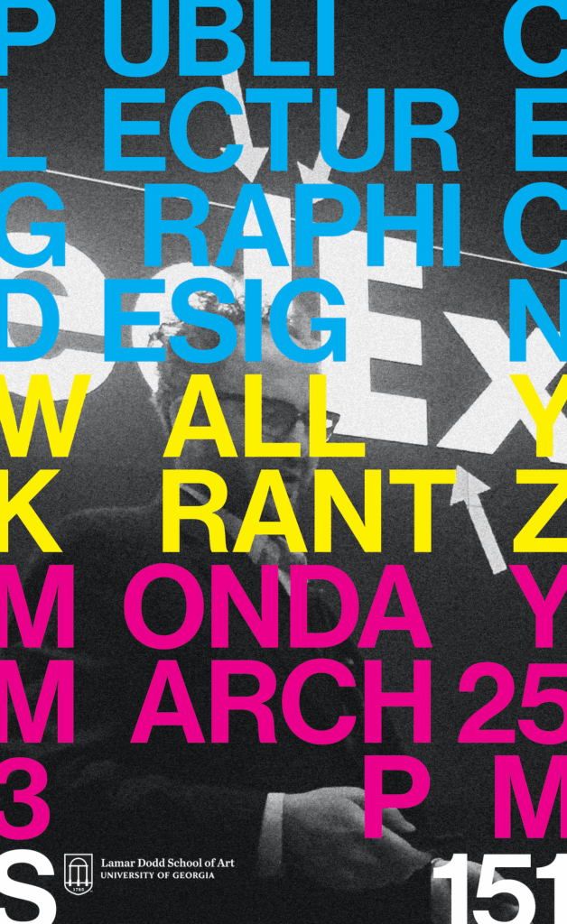 Join us for a Visiting Graphic Designer event at the Lamar Dodd School of Art with New York-based designer Wally Krantz. Krantz will be delivering a public lecture on March 25 and a two-part workshop titled “Obfuscation as a Way of Engagement” on March 26 and on March 28. (for more details regarding the workshop, click here)