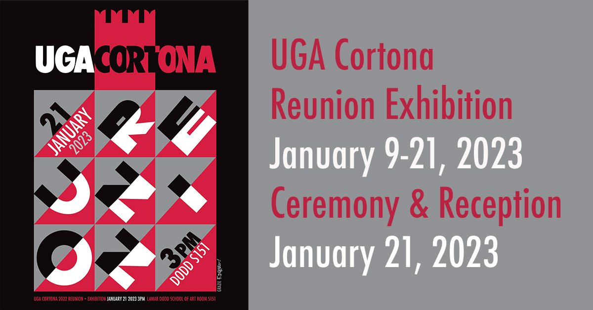 Jan 21 Exhibition Reception and Reunion | UGA Cortona January 21st, 2023 at 3:00 pm Auditorium S151 January 21st, 2023 at 3:00 pm Auditorium S151