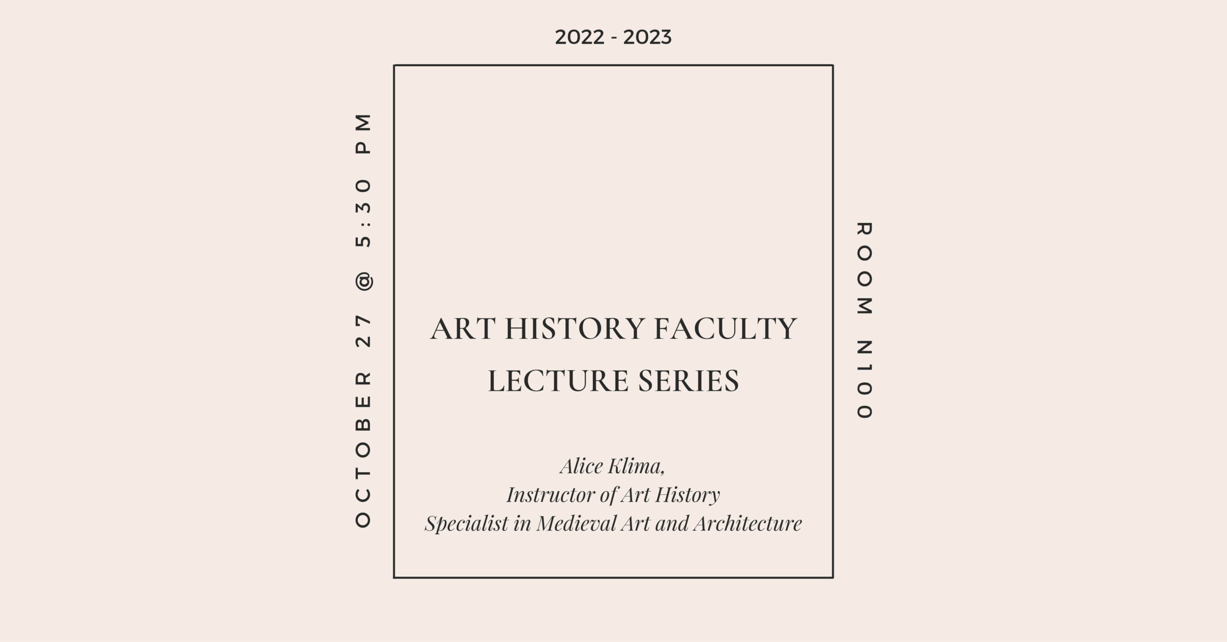 Oct 27 Art History Faculty Lecture | Alice Klima October 27th, 2022 at 5:30 pm Lamar Dodd School of Art | N100 October 27th, 2022 at 5:30 pm Lamar Dodd School of Art | N100