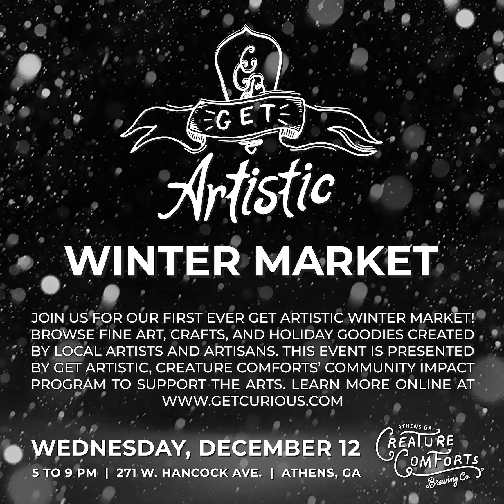 Dec 12 Get Artistic Winter Market at Creature Comforts December 12th, 2018 at 12:00 pm Creature Comforts Brewing Co. | 271 W Hancock Ave December 12th, 2018 at 12:00 pm Creature Comforts Brewing Co. | 271 W Hancock Ave