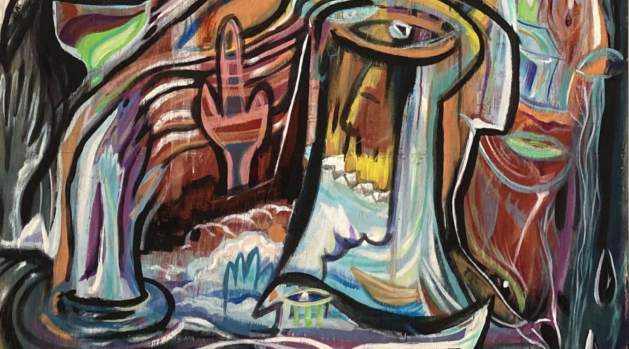 The Elements of Myth is an exhibition by Dodd graduate candidate, Kelsey Wishik, that emphasizes the material nature of phenomena. Drawing from her extensive research in Buddhism and various indigenous shamanic practices, Wishik engages in the repetitious act of weaving, stacking, and the welding of natural materials to create reverential art objects. Through the process of building this exhibition which includes paintings, drawings, and installation, Wishik reflects on the inner architecture of natural systems. The Elements of Myth draws from material investigation, participation in spiritual practices, and ritualization through object making.