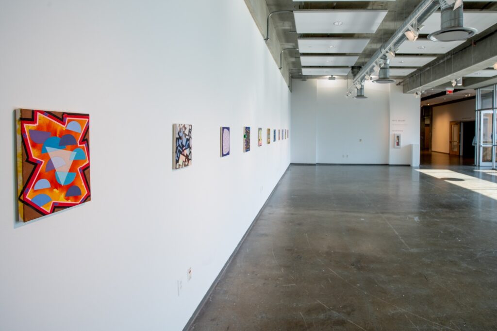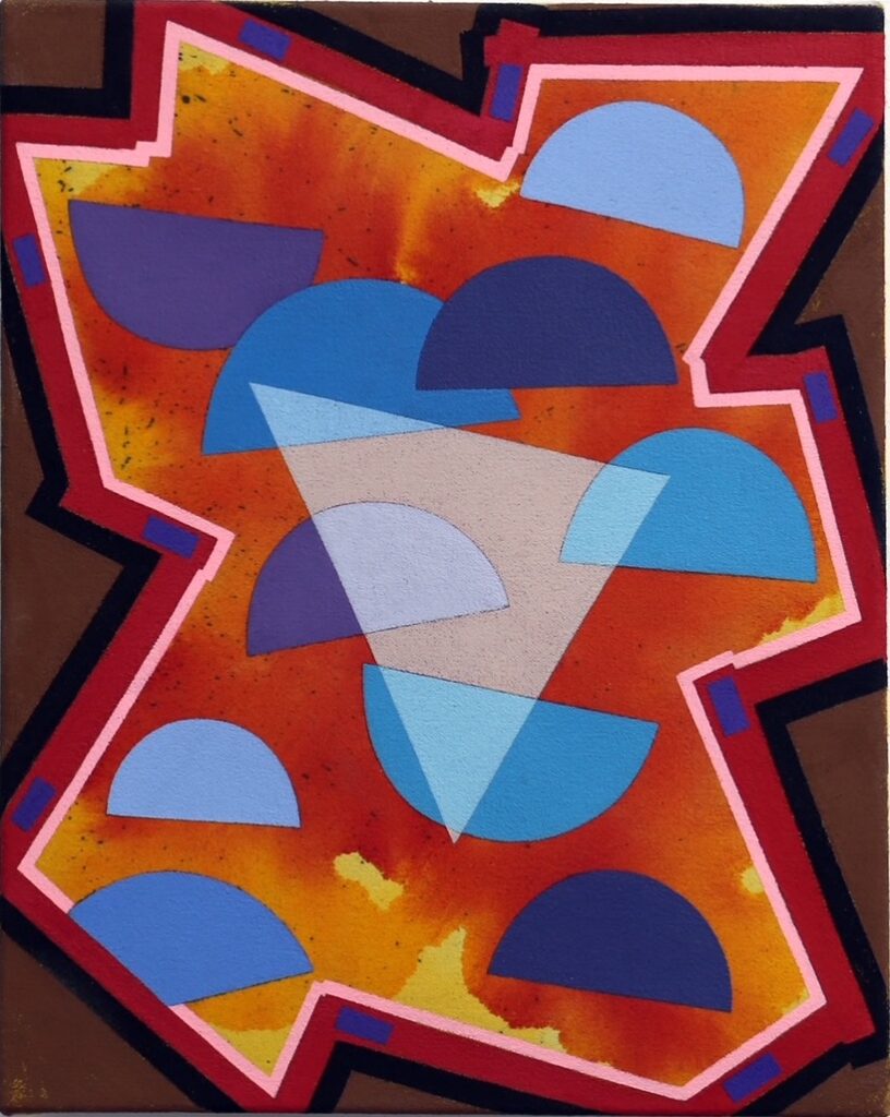 New York-based painter, Stacie Maya Johnson, presents a series of new, modest sized abstract works. The qualities of Johnson’s paintings include obvious shapes and colors that might recall, in her own words, “kids design” as well as kids crafts projects that she works on with her daughter, Willa. The shapes are based on items she finds in her studio and that are readily traceable. “Spills and scribbles are just as useful to the process as are cut pieces of colored construction paper,” she explains. ”Sometimes I use string to lay out a particular curve.” The colors vibrate against one another, pushing and pulling at space. Viewing the work becomes a visual game as the viewer’s eyes bounce around the painting, seeking what is and isn’t in balance.