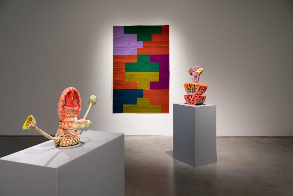 Stacks on Stacks presents the work of three artists from the Carolinas working in abstraction–Mark Brosseau, Martha Clippinger, and Susan Klein. The artists explore the relationships of shape and color through various media including painting, ceramics, wood, and textiles. Together, their investigations of hue, line, and form stack against each other, generating a rhythm that echoes throughout the gallery.