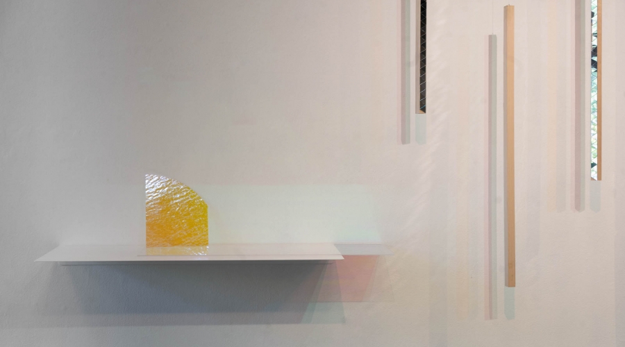 Wall work is a program at the galleries where we invite an artist to create a semester long, site-specific work in the Plaza Gallery. Atlanta-based artist, Madora Frey’s Available Light explores the artist’s romantic regard for both the natural and built environment in her search for the sublime. She employs colored gels and various reflecting materials to create an environment that destabilizes the corporeal world into gradations of light and shadow. Frey examines the dynamic properties of light like reflection, refraction, and color to subtly shift the viewer’s experience toward a sense of wonderment viewed through the lens of the mythical and the feminine.