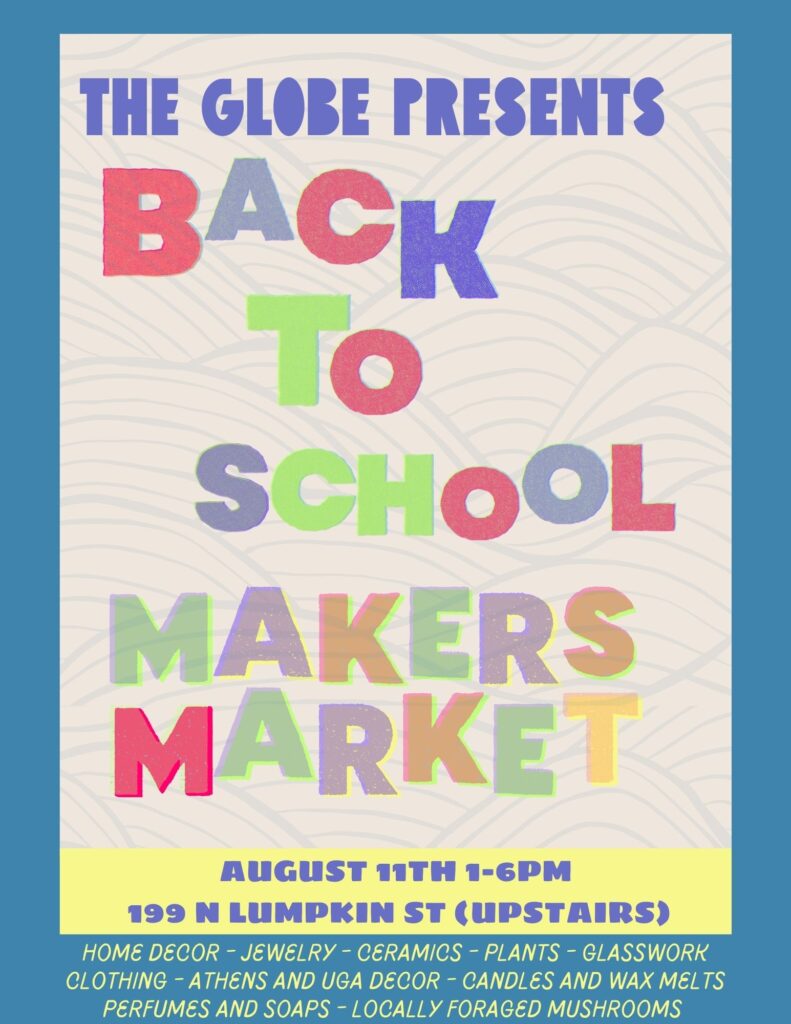 The Globe is hosting a Market and Mingle event on August 11th from 1:00-6:00pm. We encourage new and returning students and faculty to stop by! We would love to share our space and give artists who are interested a tour of the upstairs, and allow them the opportunity to talk to someone about hanging their artwork up for a month or joining a future market (both free to do!). Vendors keep 100% of their profits.