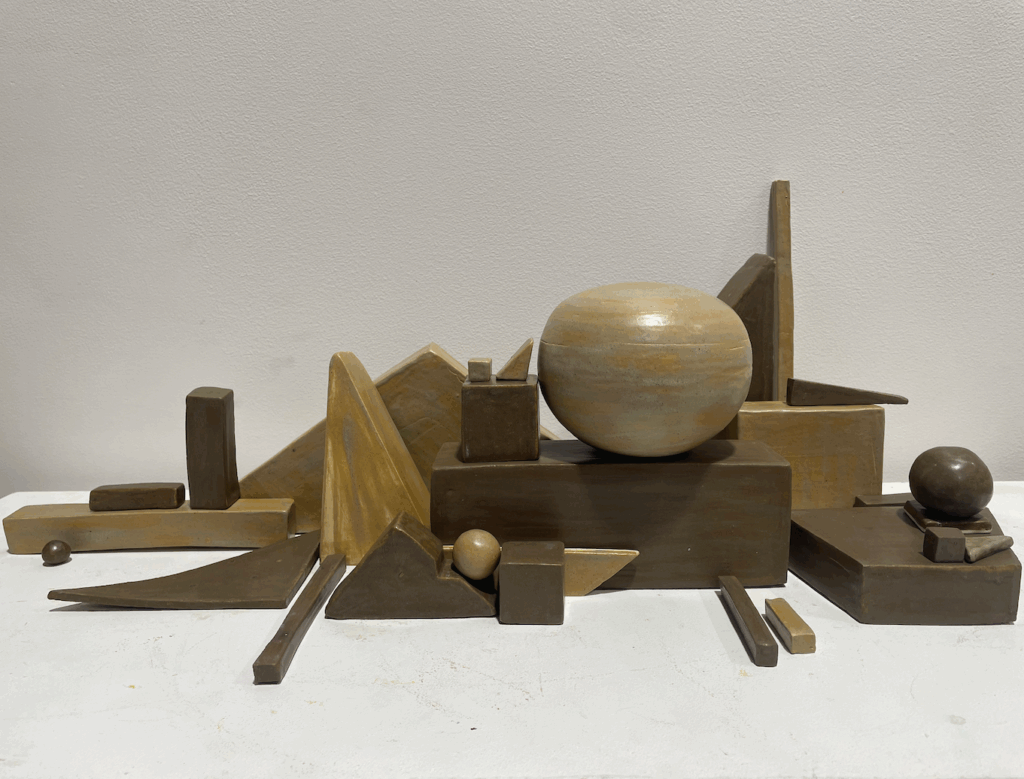 Creating in two mediums allows me to further explore abstraction and the different boundaries of each material. With ceramics, I am able to play with how glaze changes the piece in unexpected ways, and am constantly finding ways to work with gravity rather than against it in my sculptures. With paint, I am able to float the shapes in space and experiment with the transparency and texture of brushstrokes.