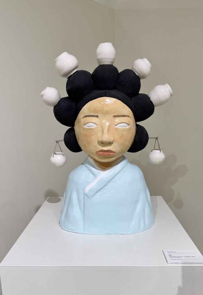 I carry on the stylistic and skillful qualities of Korean art, like moon jars and intricate surfaces. The subject matter of my work, though, is inherently American, as it references key experiences of my personal life like living in San Francisco and my thoughts on American beauty standards. These topics connect me to my generation and help depict the viewpoints of today’s iteration of Korean Americans.