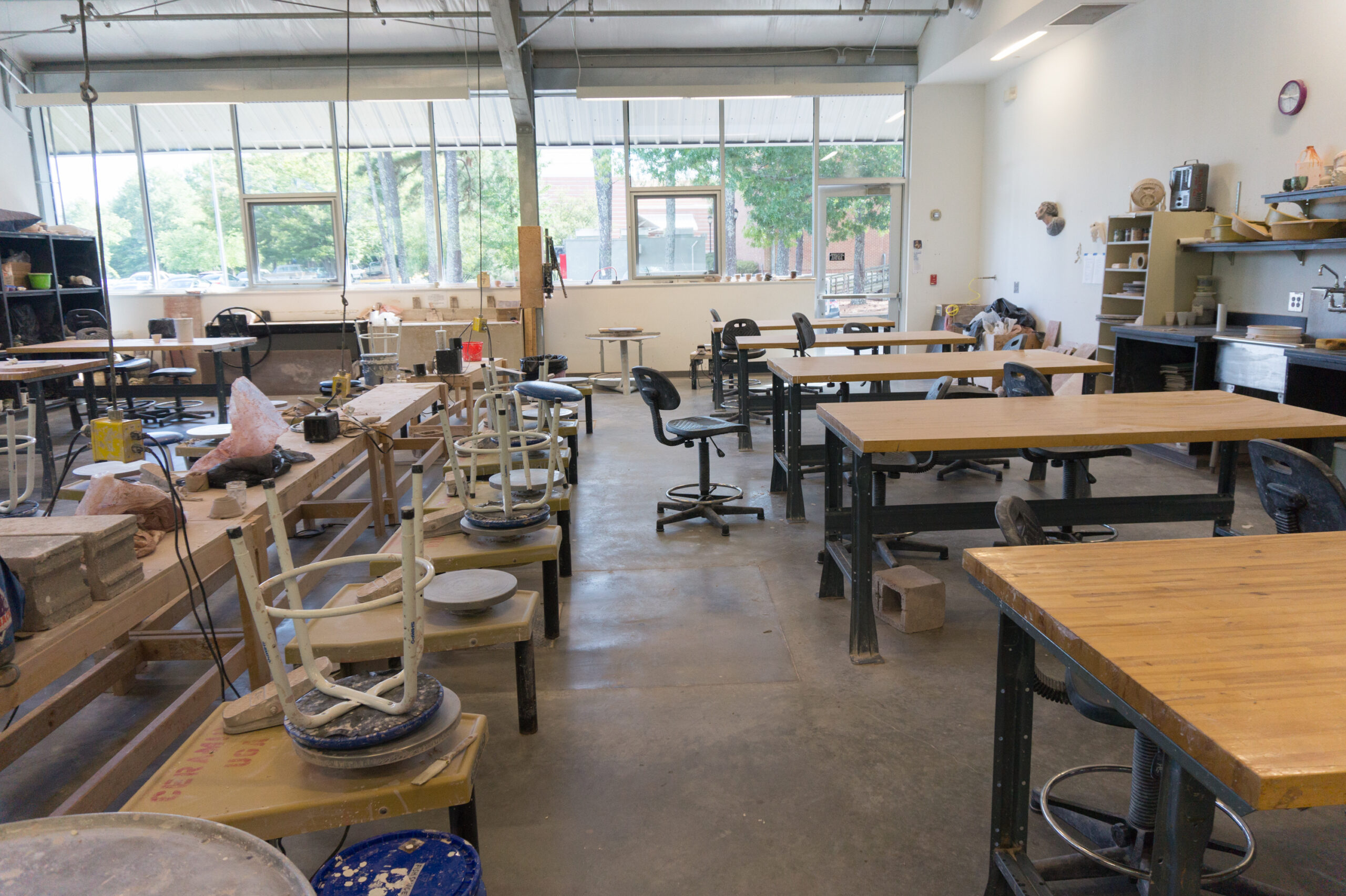 Since 2012, the Ceramics program has been housed in its own 15,000-square-foot building that contains kilns and studios for students and faculty. Kilns include two atmospheric kilns, six downdraft gas kilns, and one 90-cubic-foot car kiln. There is also a clay making room, a glaze room, and a computer lab.
