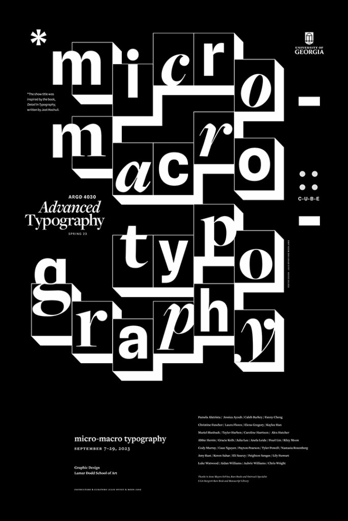 The Graphic Design area at the Lamar Dodd School of Art prepares students to communicate ideas and experiences across various various media by integrating visual and textual content. Professional graphic design practice is diverse and dynamic; thus, the Graphic Design program of study stresses a strong grounding in design and communication fundamentals like typography, information hierarchy, concept development, and visual exploration.