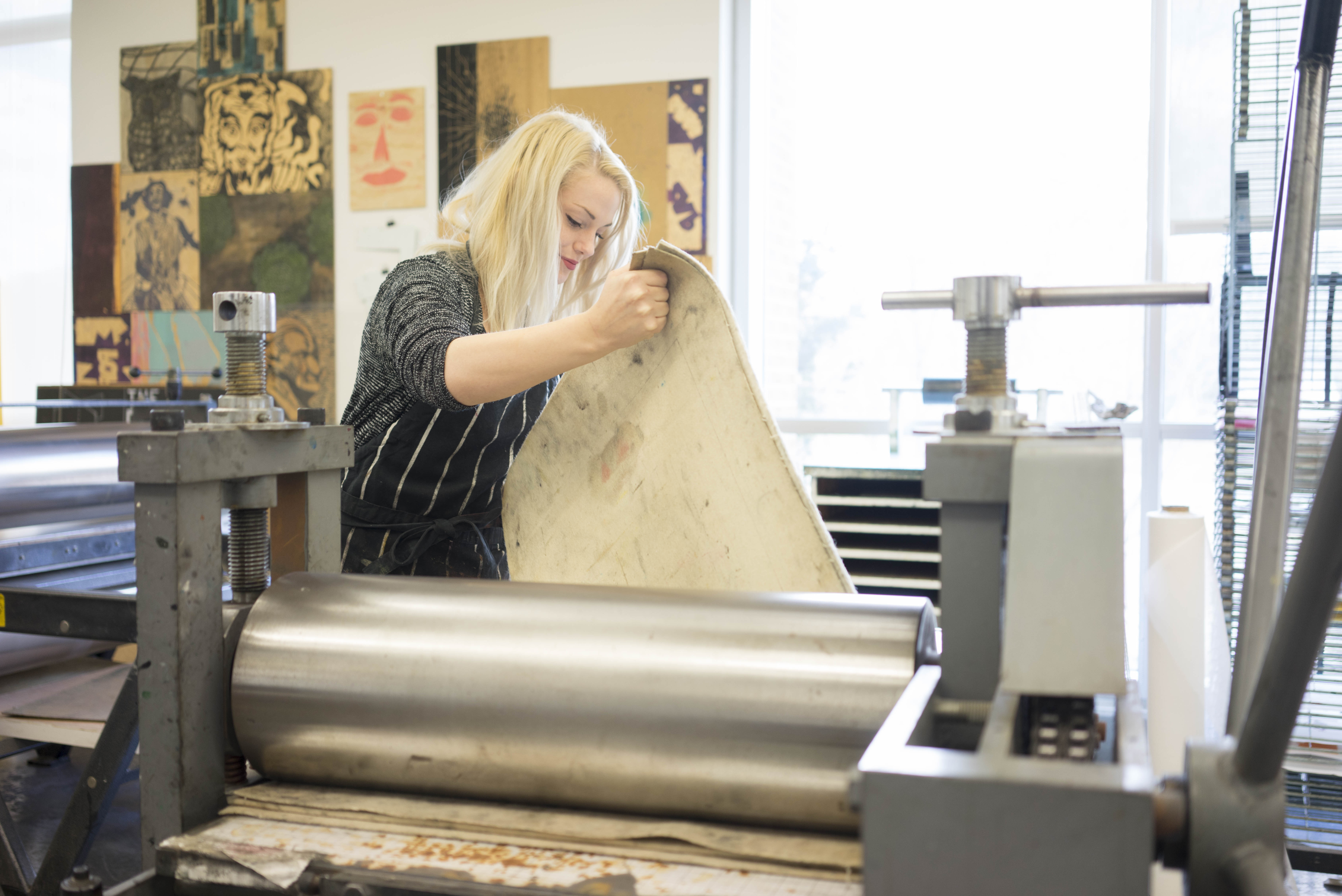 The Printmaking and Book Arts program is ideal for undergraduate students who are keenly interested in using printmaking as the primary medium of expression. Students will need to be self-disciplined and persevering, with an interest in expressing themselves skillfully and aesthetically in a variety of print media. The program emphasizes intellectual curiosity and encourages an experimental and innovative attitude. Drawing ability and a sense of design are essential skills to succeed in the program, as is the ability to accept direction and criticism.