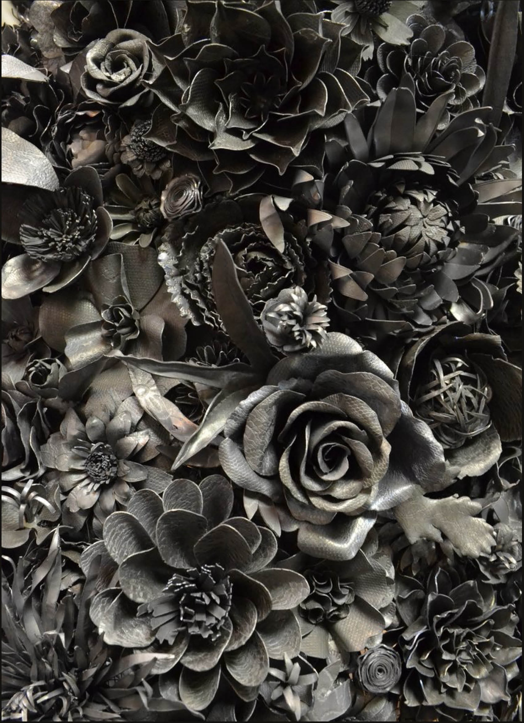 Matters at Hand examines how materials and objects accumulate meaning while expressing paradoxical links between the world brought to us by our senses and our desires, and death. The accumulation of matter plays a role in shaping the work while simultaneously conveying the emptiness of over-consumption and the deep gulf between what is recorded of the past and present experiences. Lead contributes to the making of a number of pieces and brings with it a dark and troubling history. Its properties make the history of its uses manifold and contradictory, as murderous projectile and shield; protecting and destroying, attracting as much as repelling. Flowers and jewelry-symbols of luck and love, markers of mourning, of devotion, of celebration, used to remember, to fill voids, to declare; together they play a complex role in seduction and desire. In all of the work, the social, political, and personal merge together to explore themes of mortality and the human condition itself.