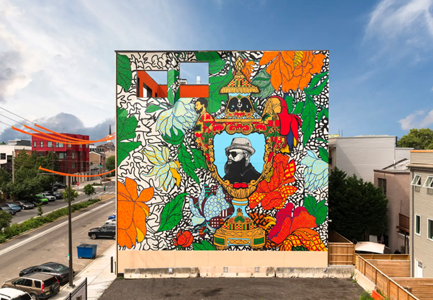 Roberto Lugo, The Talented Mr. Trotter: You Can Be Anything, 2022, The Clay Studio, Philadelphia, PA. Photo by Steve Weinik, © City of Philadephia Mural Arts Program/Roberto Lugo.