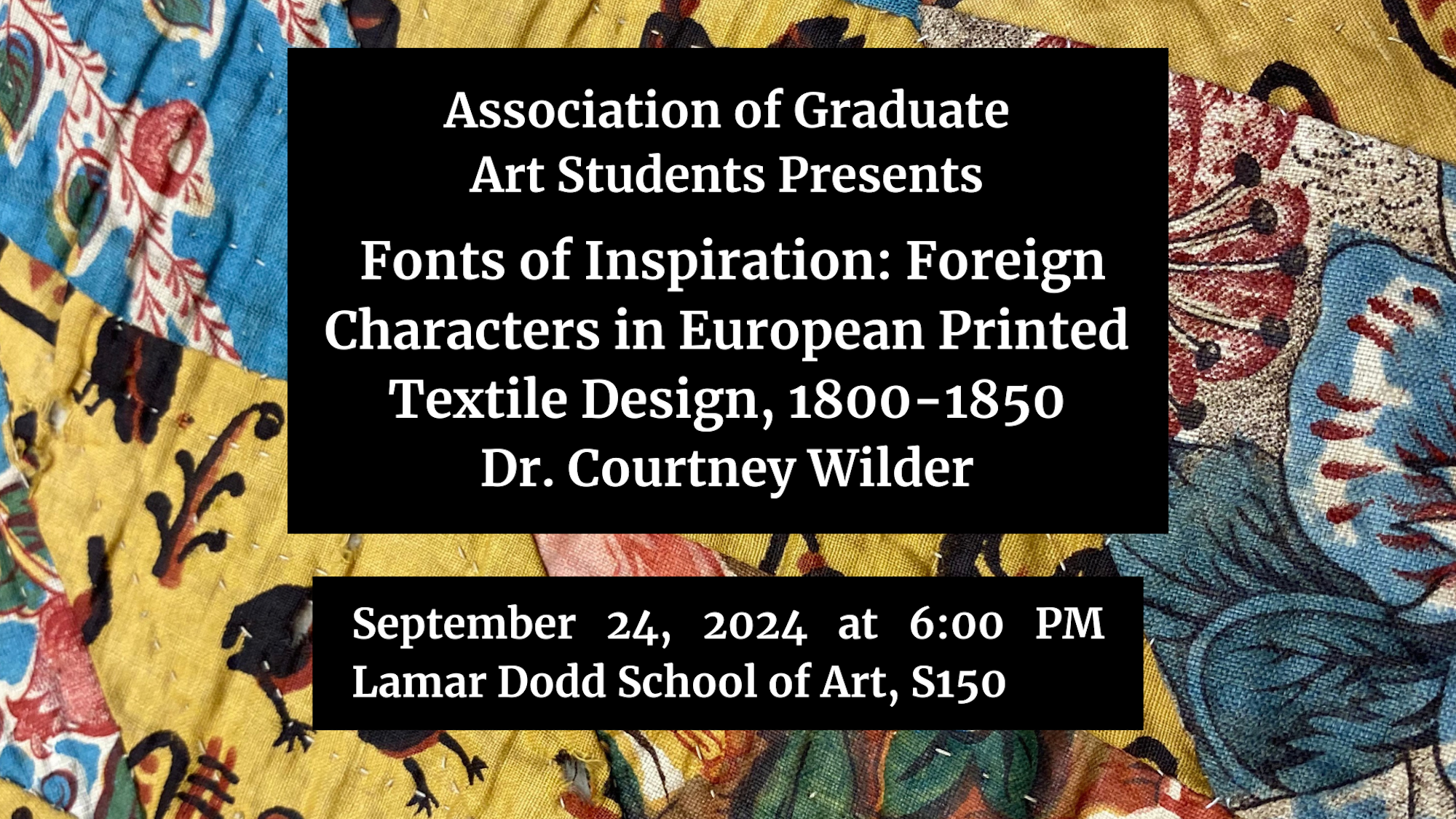 Sep 24 2024-2025 AGAS Lecture Series | Courtney Wilder September 24th, 2024 at 6:00 pm Lamar Dodd School of Art | S150 September 24th, 2024 at 6:00 pm Lamar Dodd School of Art | S150