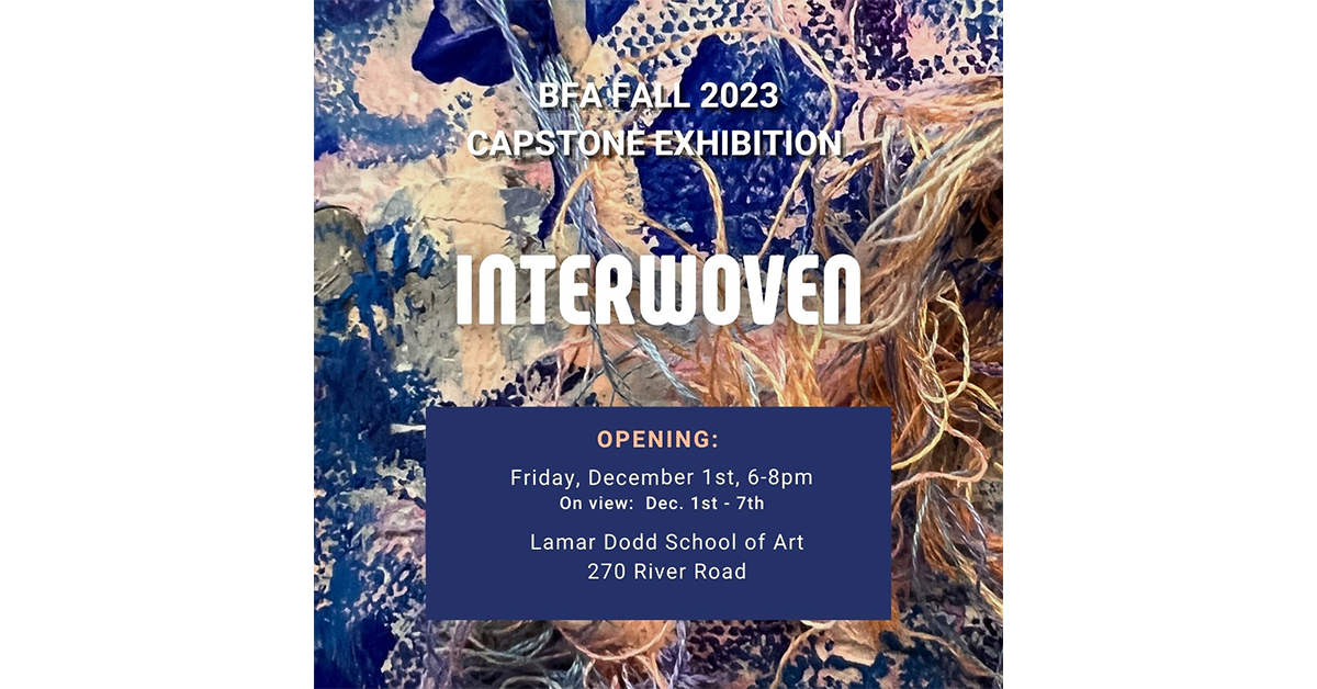 Dec 1 Interwoven | BFA Exit Show Opening Reception December 1st, 2023 at 6:00 pm Dodd Galleries December 1st, 2023 at 6:00 pm Dodd Galleries