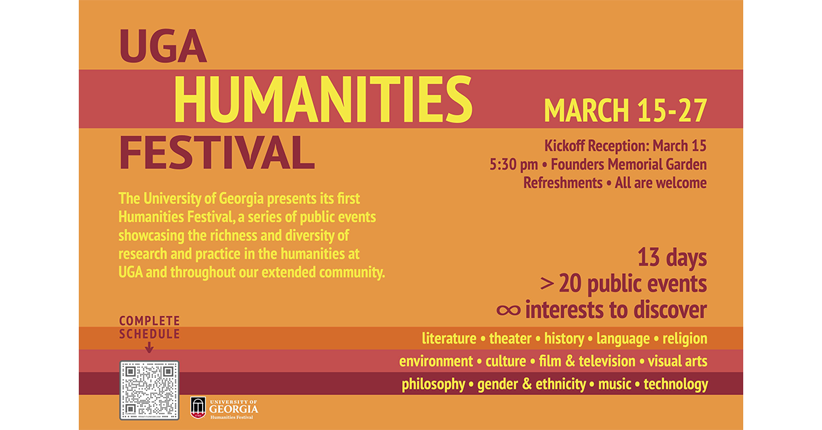 Mar 15 2023 UGA Humanities Festival March 15th, 2023 at 5:30 pm Varies March 15th, 2023 at 5:30 pm Varies