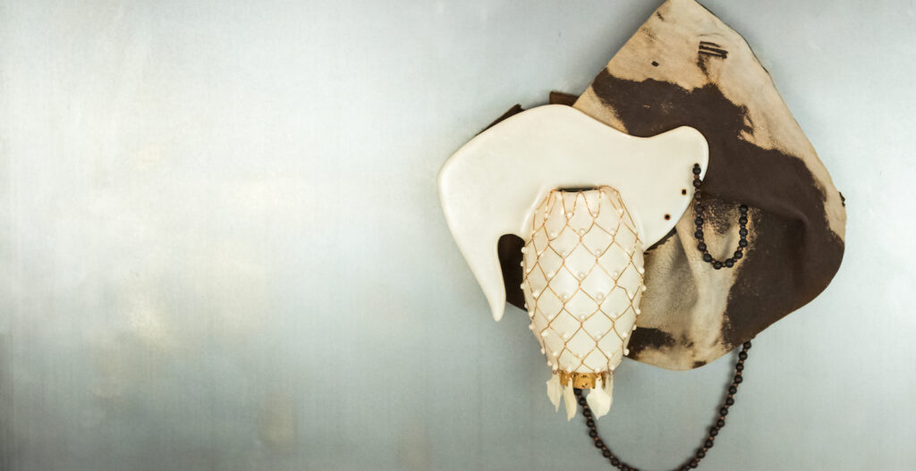 In Taking Care Jane Ritchie and Isys Hennigar consider the complex ways in which humans engage the living world. The works in the exhibition explore the language of care through slow processes, delicate balances, meticulous adornment, and attention to the fragility of living things. The tangled narratives of Hennigar’s ceramic work interweave organisms, vessels, and tools used to mediate human relationships with other species. Ritchie uses a variety of materials from pelts to metal to explore animals as commodities, investigating the ways in which various species are culturally regarded. In exhibition, the works are staged in such a way to recall early museums and objects as “curiosities.” Through layered associations and suggestions of collectively familiar forms, this collaborative exhibition makes visible the inextricable links between the human and the animal.