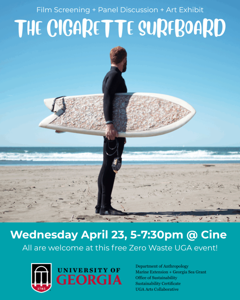 Join the Filmmaker, Ciggy Board Creator, UGA researchers, and local artists for a discussion of ocean stewardship and plastic waste reduction. The event is free, open to the public, and seating is limited.