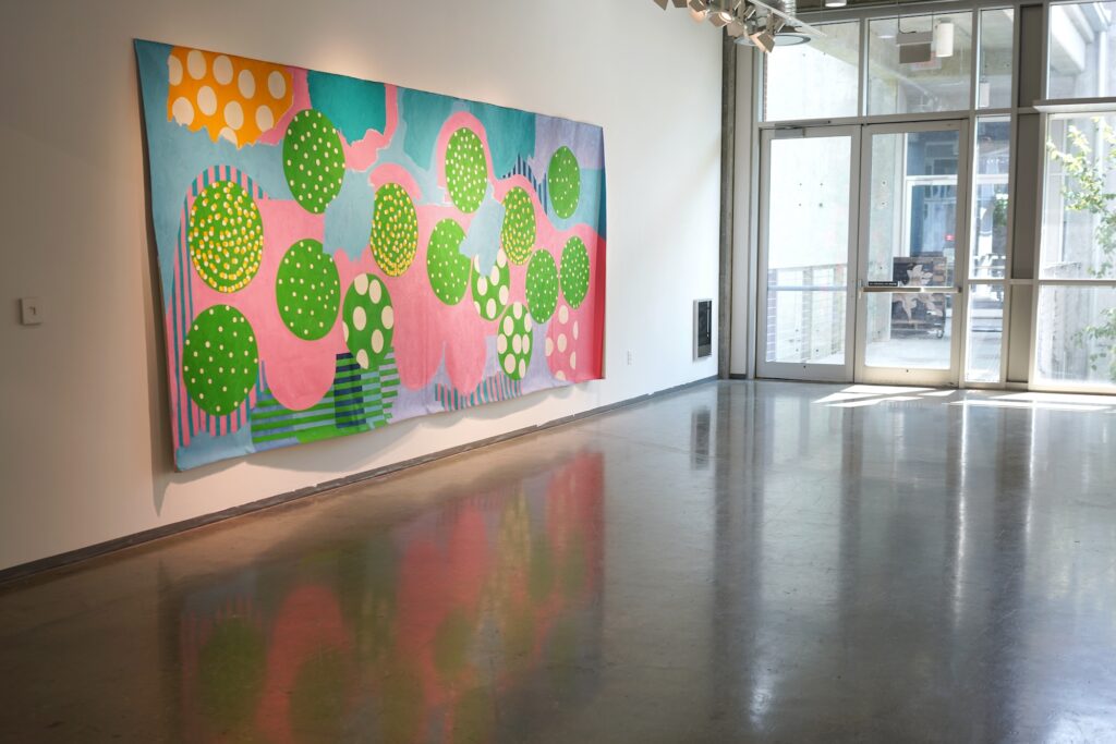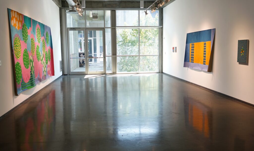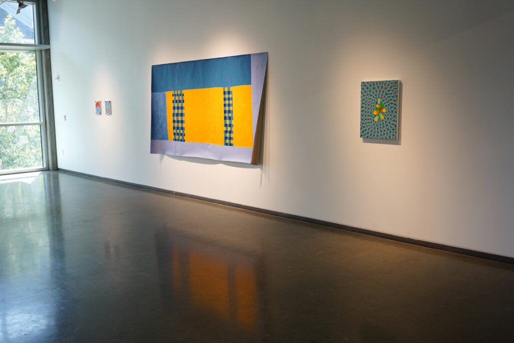 Legion Pool, the University of Georgia’s storied watering hole for the past 80 years, is the inspiration behind Athens-based artist Carol John’s new series of paintings. John, whose paintings generally display abstraction full of frenzied line and color, presents a new restrained sensibility in these works. Making loose references to the painted lines on the bottom of the pool, the meditative act of swimming laps, and the various blues that reflect throughout the atmosphere, the paintings atomizes the experience of a hot summer day at Legion Pool.