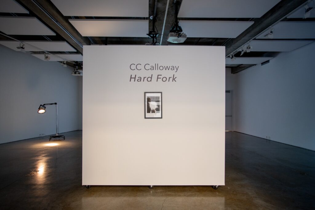 Serving as a metaphor for this exhibition by Athens-based artist and Dodd Limited-Term Lecturer, CC Calloway, Hard Fork consists of a video installation and sculpture made over the span of a decade. In her work, Calloway uses pop culture, language, and technology to frame selfhood and authorship in a state of fluidity. Utilizing devout mantras and intimate texts (culled from both personal and celebrity personas), Calloway creates moments where authenticity and meaning are distilled in the materials and processes on which she inscribes, imprints, and projects her phraseologies.