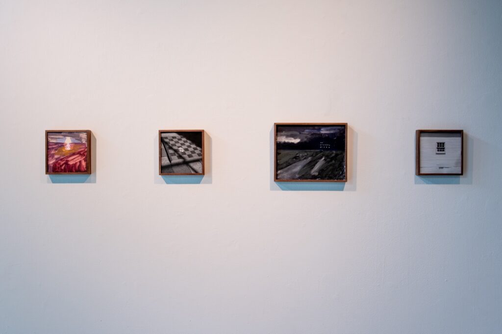 A Far Off Theater is a collaboration between Dodd MFA Candidate Landon McKinley and visual artist Maria Noel. This body of work investigates the process of removal and obfuscation. Through  painting and photography, these artists collaboratively fabulate a series of fragmented narratives about a world saturated in perpetual information, isolation, and dusk. Swaths of rich shadow...