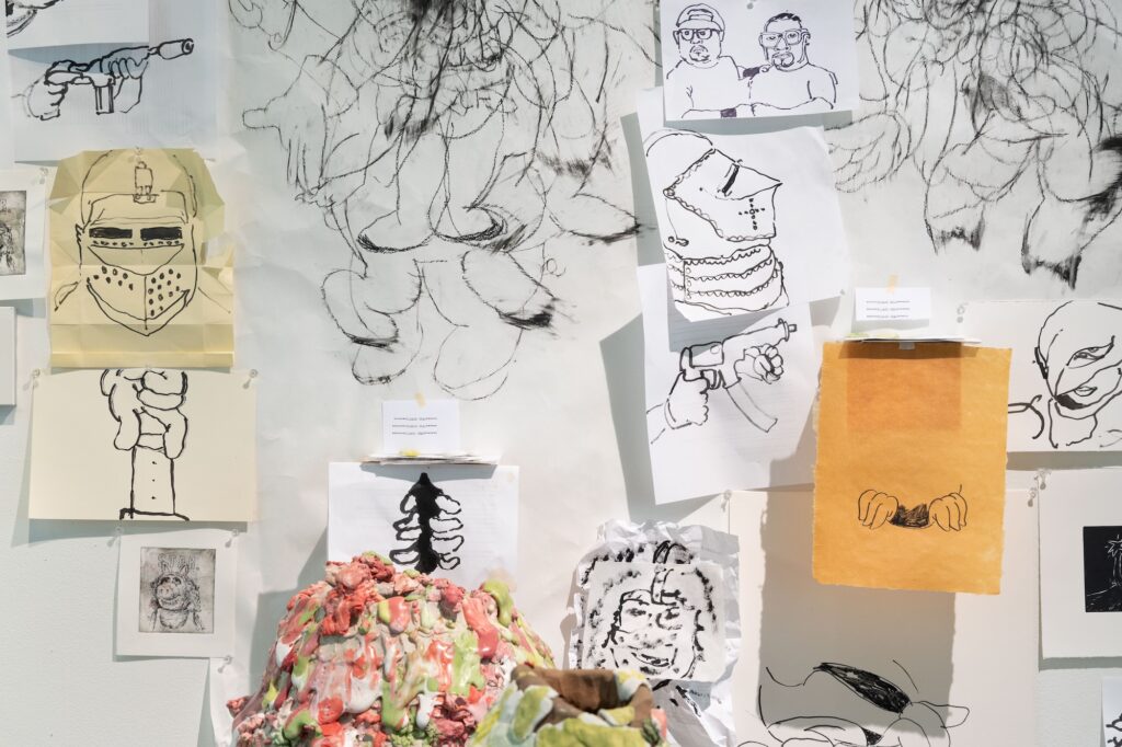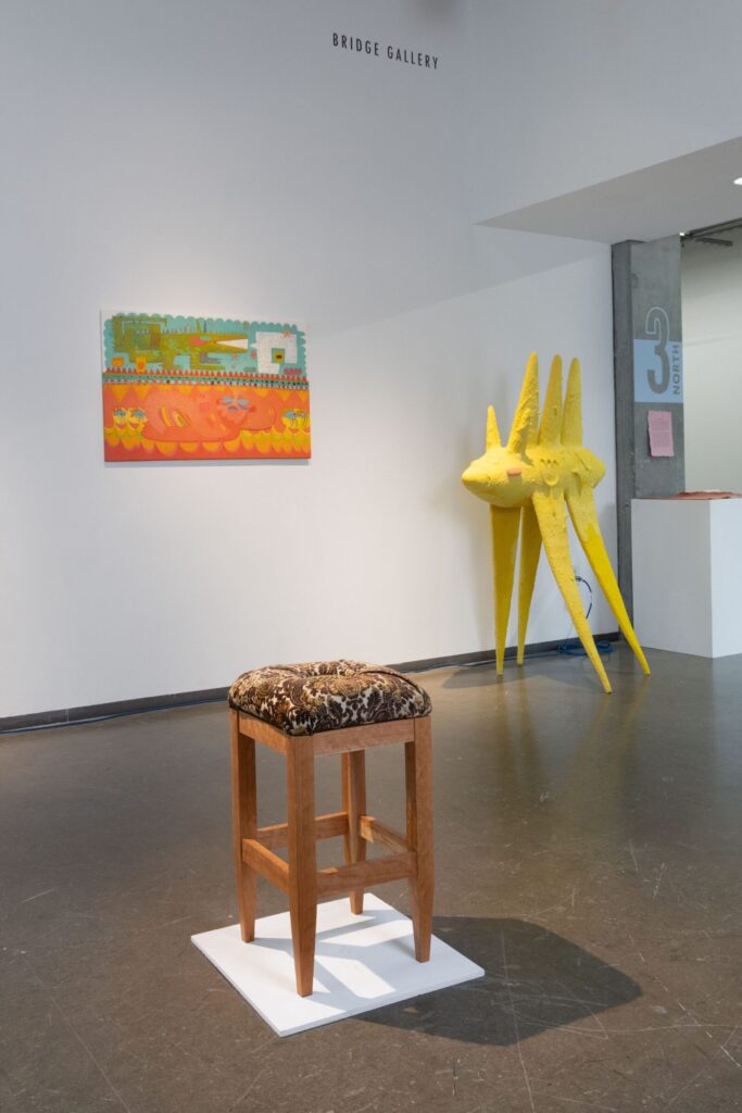 Activated by human presence, homes are curated living spaces furnished with ideals, objects, and memories gleaned from individual life experience — but what does it mean to be living at home, and what influences our personal iterations of domestic time and space? MEAT-a-physics is an exhibition that pulls together the work of eight different MFA candidate artists at the Lamar Dodd School of Art to answer this question of a predisposed reality turned askew, offering new perspectives and criticisms on what meanings the concept of domesticity continues to carry in the 21st Century. Existing as a partly-interactive collection of paintings, sculpture, ceramics, and writing, MEAT-a-physics allows viewers to critically investigate the varied social histories associated with the concept of domesticity, and reimagines the home as an androgynous utopia that is welcome to all who wish to participate.