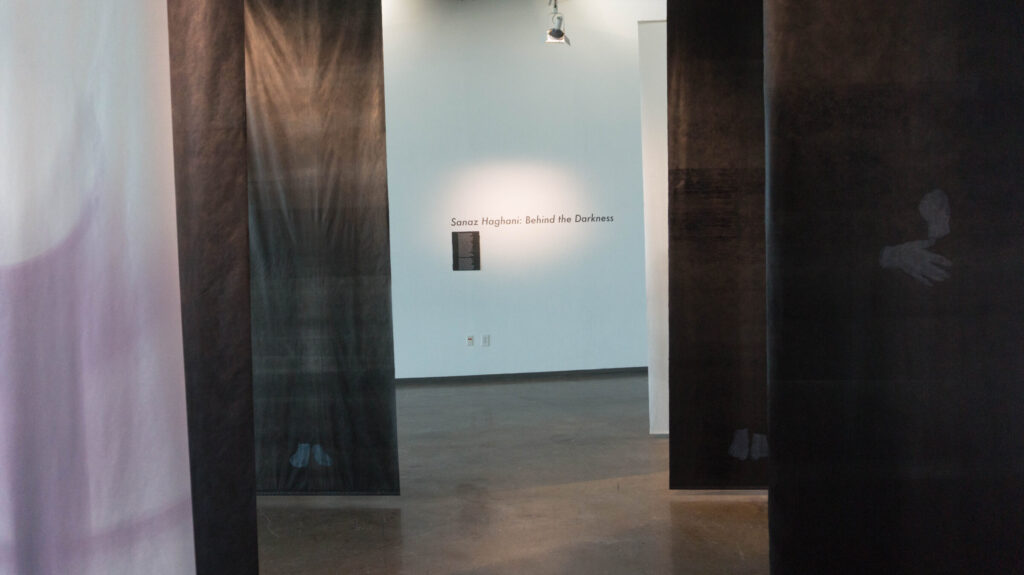 In this series of prints Dodd MFA student, Sanaz Haghani, continues her investigation in the veiling of Iranian woman. Having grown surrounded by the hijab, the mysterious veiled Muslim Iranian women that captured Haghani’s attention as a small girl continue to billow around the edges of her mind. As she grew older, Haghani questioned the doctrine of the hijab and the ways in which this specific piece of clothing influenced and shaped her identity. Each of her works is constructed to magnify the contradictions of the hijab. Different shades of hijab transformed to a symbol of chastity and pietism into a cultural icon, political manifesto, and finally related to the mental and emotional state of identity. In Islam, a woman’s body is a type of battleground for various kinds of rhetoric and political ideology. In these works, Haghani examines how a culture and its identity can be understood from the status and circumstances of its women, such as the roles they play in the society, the rights they enjoy or don’t, and, most pointedly, the dress codes to which they must adhere.