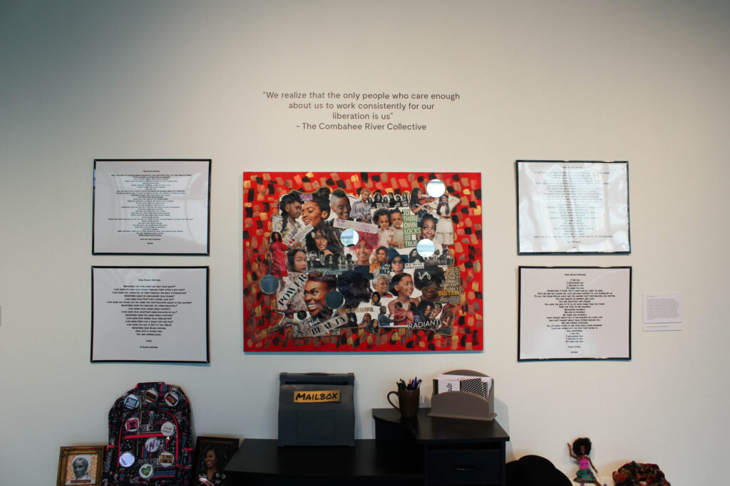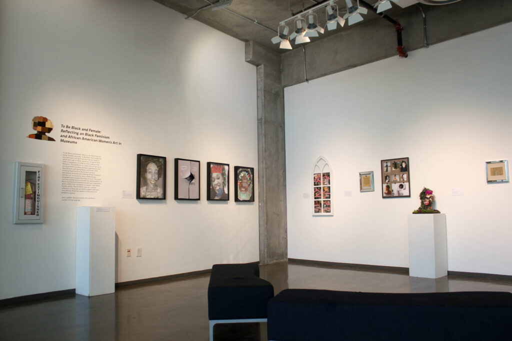 Amber Coleman curated this exhibition in conjunction with her applied project for her Masters of Art Education at the Dodd, entitled “Understanding Black Feminist Theory and the Representation of African American Women’s Art in Museums: Engaging Black Women in Critical Dialogue.” The purpose of this project is to critically examine and artistically reflect on how Black feminist theory can be utilized to educate art museum visitors and curate African American women’s art in museums. The participants, Amber Coleman, Ashley Crooks-Allen, Karina Lewis, and Monique May, created works of art after reflecting on their own Black/feminine experiences while exploring Black feminist theory, African American women’s artworks, and museum educational practices. This group of young professional Black women participated in a series of field trips, readings, and art-making and writing activities in order to create an exhibition that asks viewers to think critically about how African American women’s art exists in museums and how we understand and learn from these works. The artists featured in the exhibition hope to provide a better understanding and increased representation of African American women’s art and challenge others to question how Black feminist theory can work within exhibition spaces.