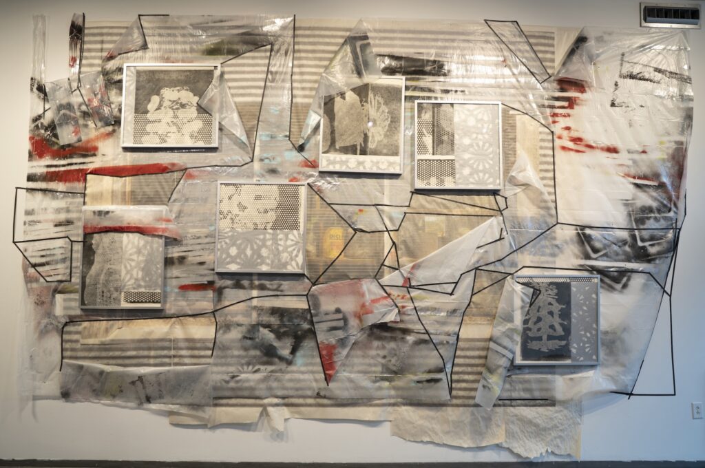 In their five year collaboration, Swindler and McFalls employ a cross-disciplinary approach that often results in unpredictable, sprawling arrangements combining sculpture, painting, printmaking and other sorted media and materials. Remnants from the previous works are combined with “new” components as well as elements from each of their respective individual studio practices. These combinations often manifest as large, composed piles of art-making detritus that serve as repository and resource for their installations. As studio artists, the two share certain inherent formal traits but widely differ when it comes to procedures, ideas, and motives. The resulting “tension” creates uncomfortable moments of compromise and artistic break throughs.