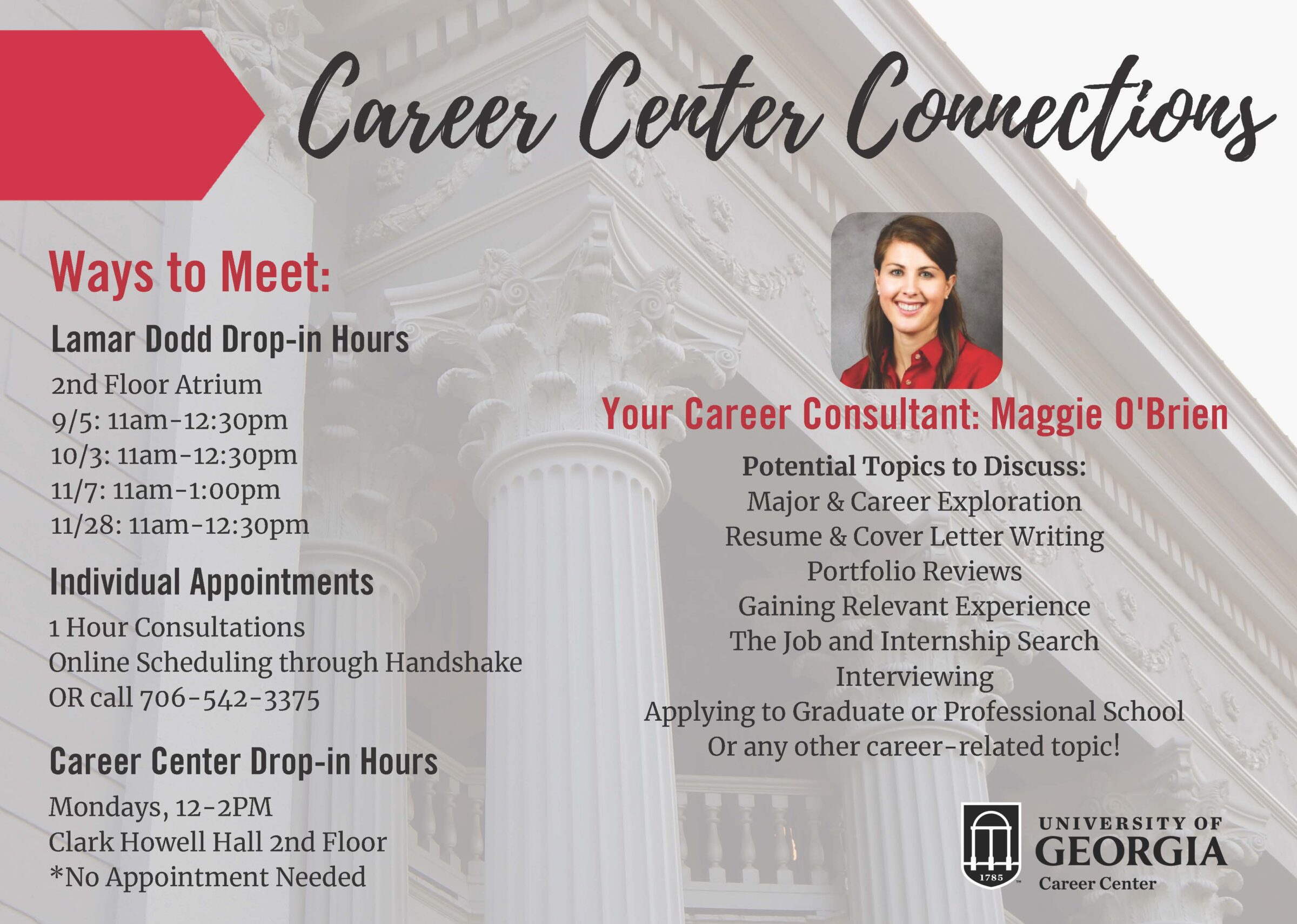 Sep 5 Career Center Connections September 5th, 2018 at 7:00 am Lamar Dodd School of Art | 2nd Floor Atrium September 5th, 2018 at 7:00 am Lamar Dodd School of Art | 2nd Floor Atrium
