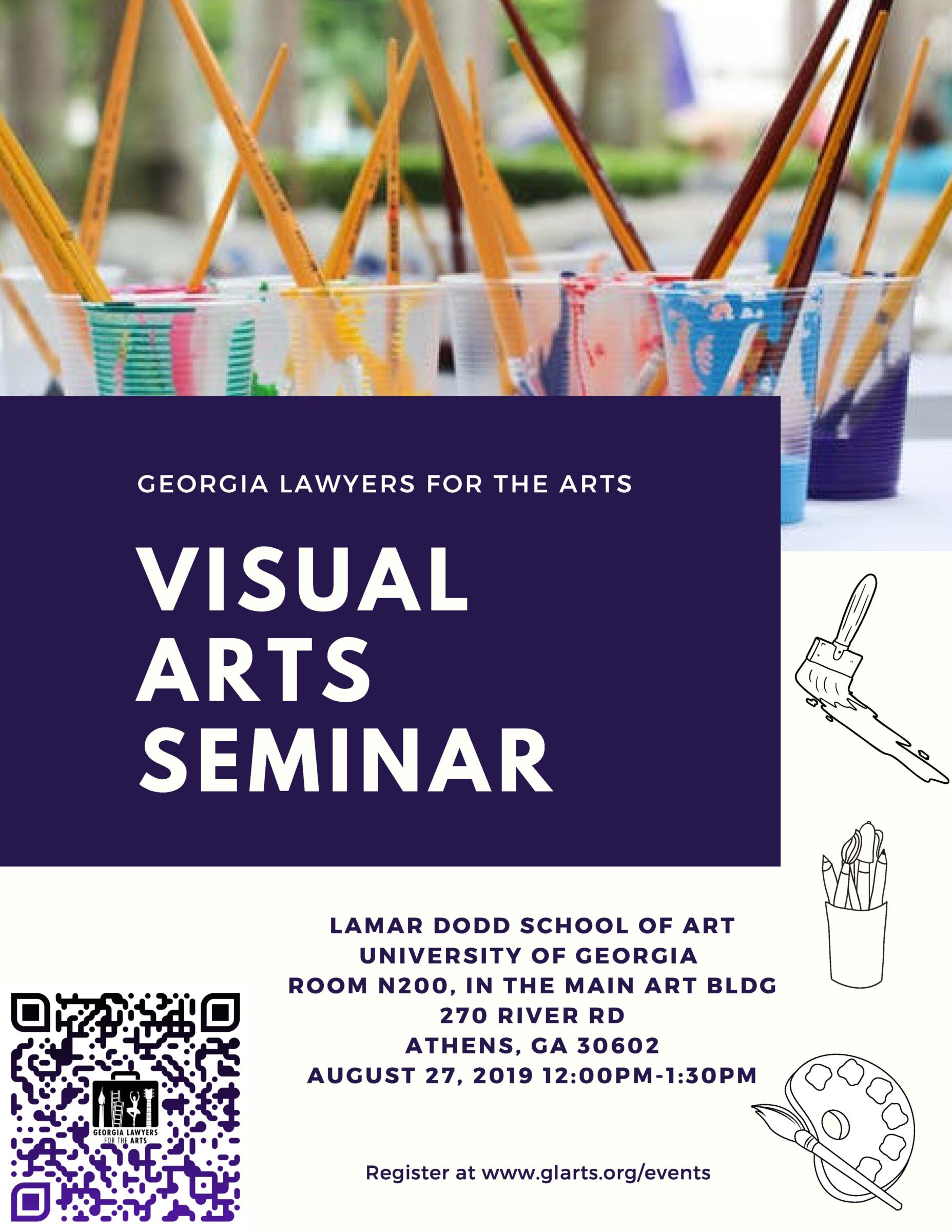Aug 27 GA Lawyers for the Arts: Visual Arts Seminar August 27th, 2019 at 12:00 pm Lamar Dodd School of Art, N200 August 27th, 2019 at 12:00 pm Lamar Dodd School of Art, N200