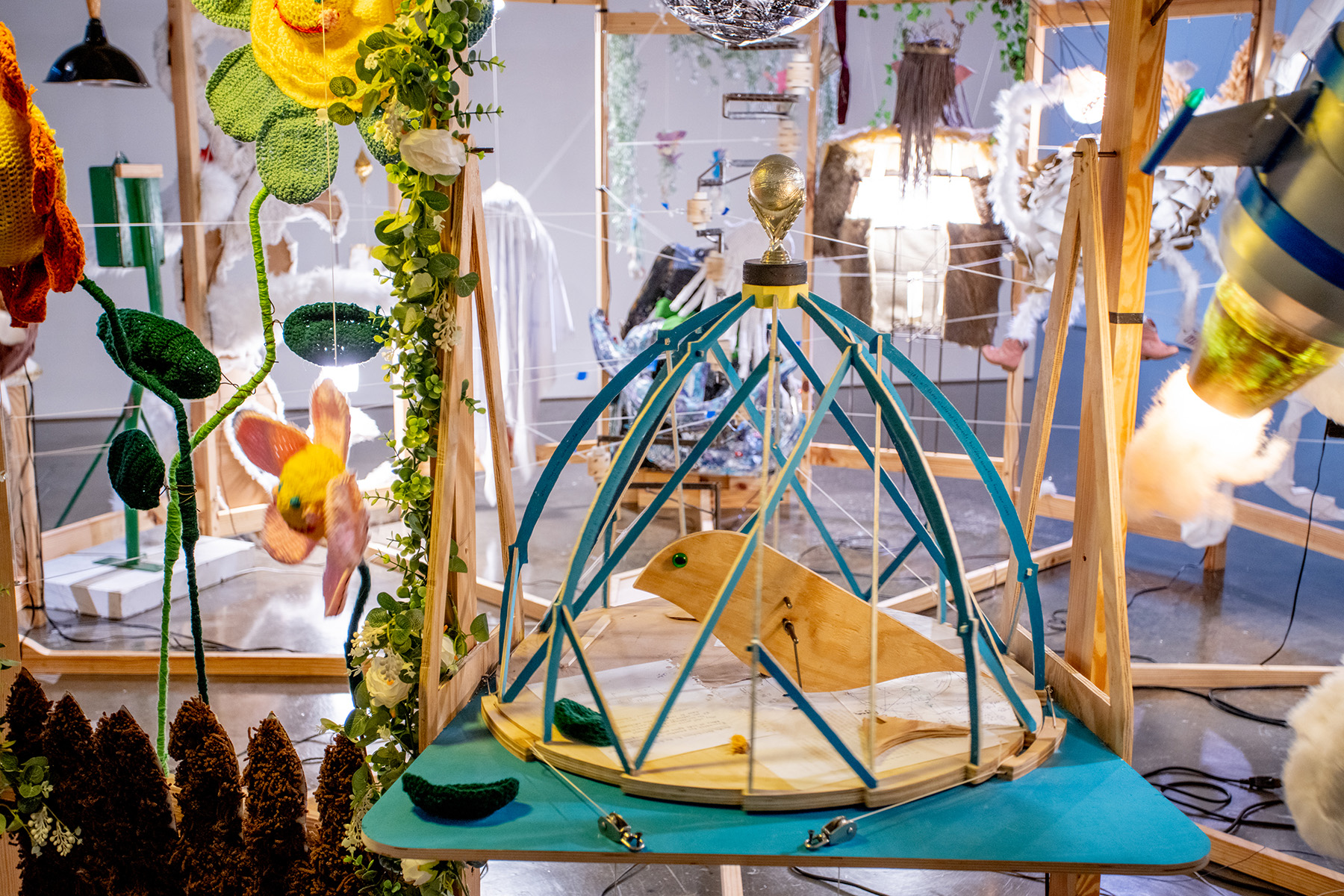 Last summer, the Lyndon House Arts Center played host to an exhibition led by Martijn van Wagtendonk, an associate professor in the University of Georgia’s Lamar Dodd School of Art. Titled “Cupola: a Collaboration,” the sculpture began as a class project and grew into an oddly satisfying collection of objects, motion, and music.