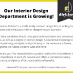 Dickinson Architects in Augusta, Georgia are looking for a full-time interior designer to join our team. The ideal candidate will have a degree in interior design, good communication and presentation skills, fundamental knowledge in the field, and proficiency in software programs like Revit and Adobe Creative Suite. Compensation $40K – $60K a year or commensurate withContinue reading "Interior Designer (Full-time) | Dickinson Architects"...