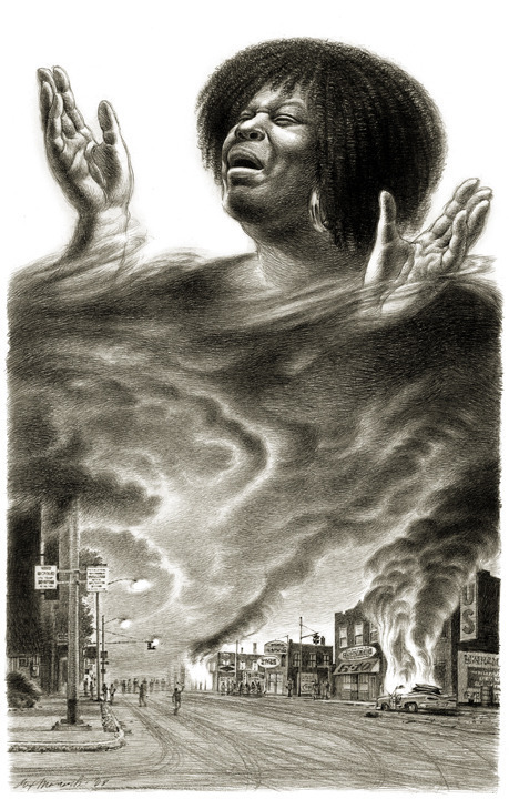 I have always been a black and white guy, thinking primarily in terms of values, light and shadow rather than color. So materials like soft charcoal, Conte Crayon, or black Prismacolor pencils were my tools of choice when I was learning to draw. My parents had all the Illustrated Classics, and before I could read I was scribbling imitations of NC Wyeth, Howard Pyle and Rockwell Kent. Later on, looking at Bill Mauldin’s Army and anything by Jack Davis introduced me to what it meant to really draw the figure. In 1972 when I started working in Chicago, art directors were casting about for black and white art that would work well in newspapers, notorious for hastily produced half tone separations and poor quality reproduction. Since line art always seemed to print well, and stipple mimicked the look of continuous tone art without the technical problems, it was a perfect solution. For the next twenty five years my work was based almost exclusively on this technique.