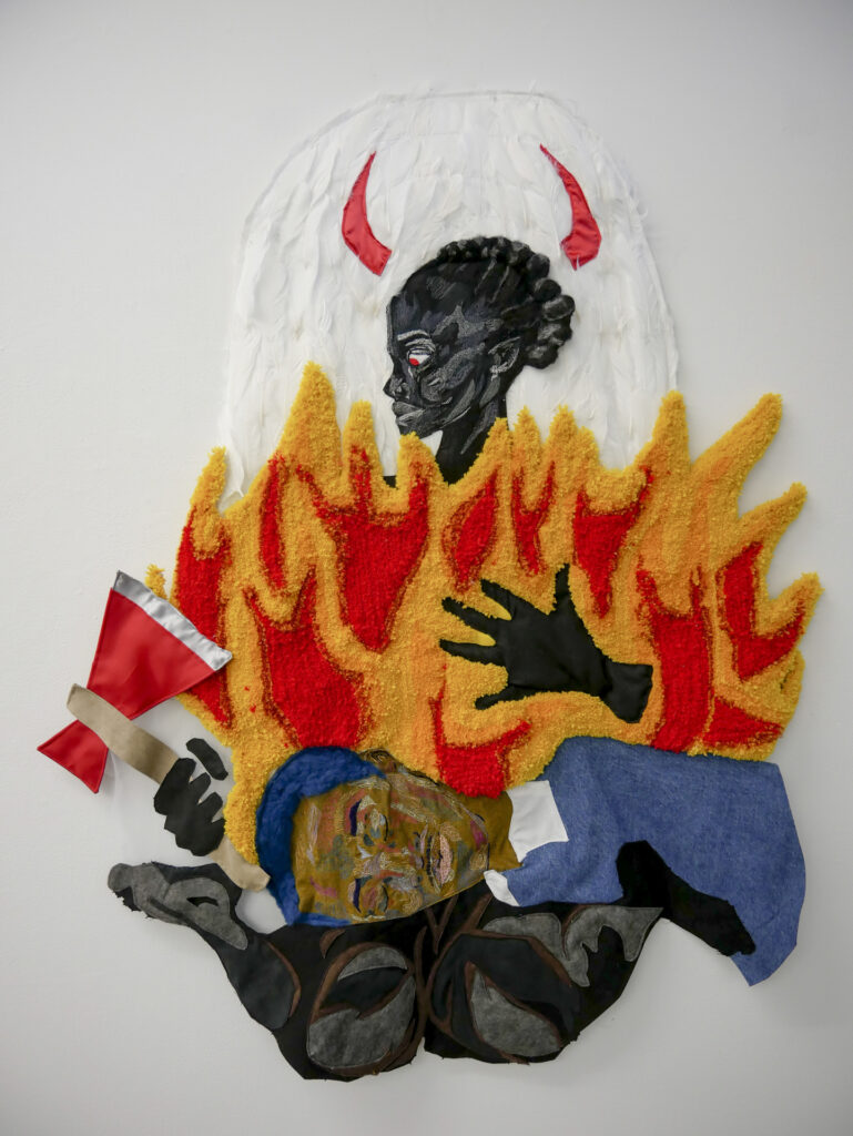 My use of fibers recontextualizes the women before me who used such materials to curate in their only places they had full control; their homes. Medium specificity is the most concise way for me to materialize the emotions tied to memories. Specific fabrics bring its own inherent narrative. My research into folk histories recently has led me to a connection with material specificity in southern superstition and conjure items. I’m exploring these materials as means of turning the everyday into the supernatural and as forms of Black resistance.