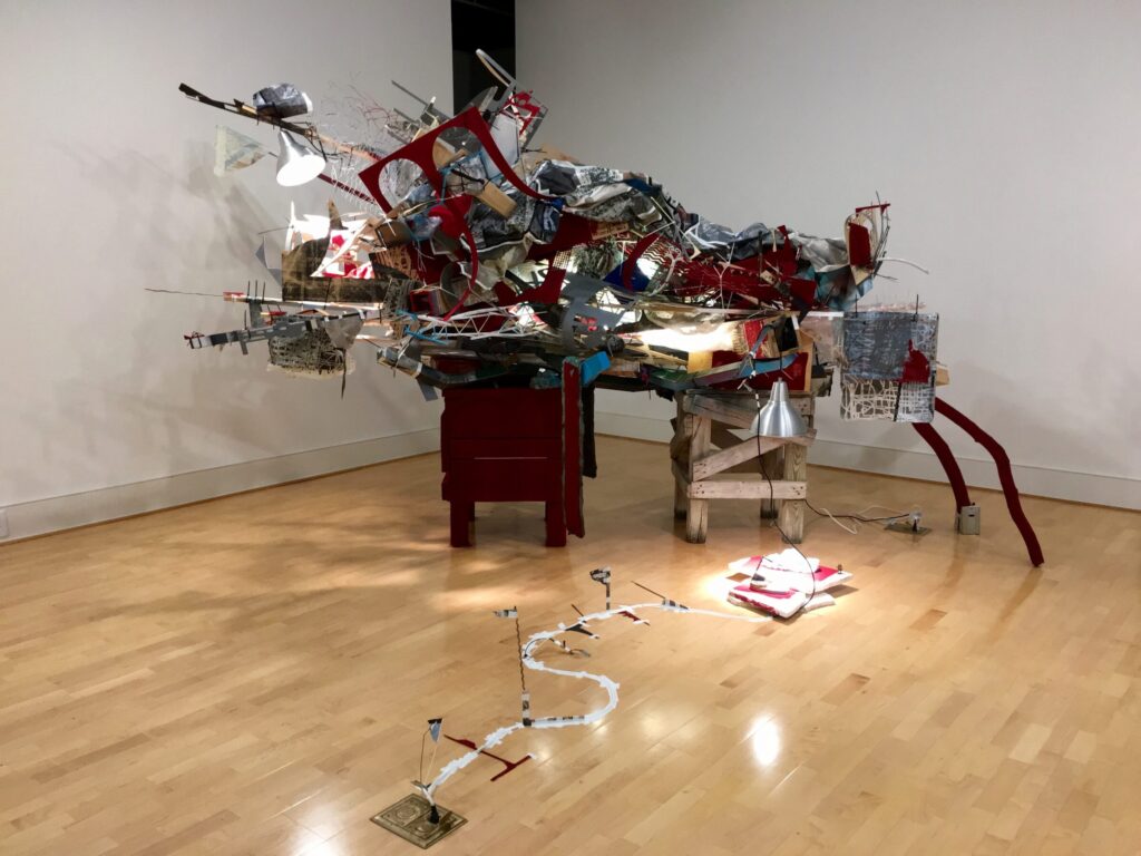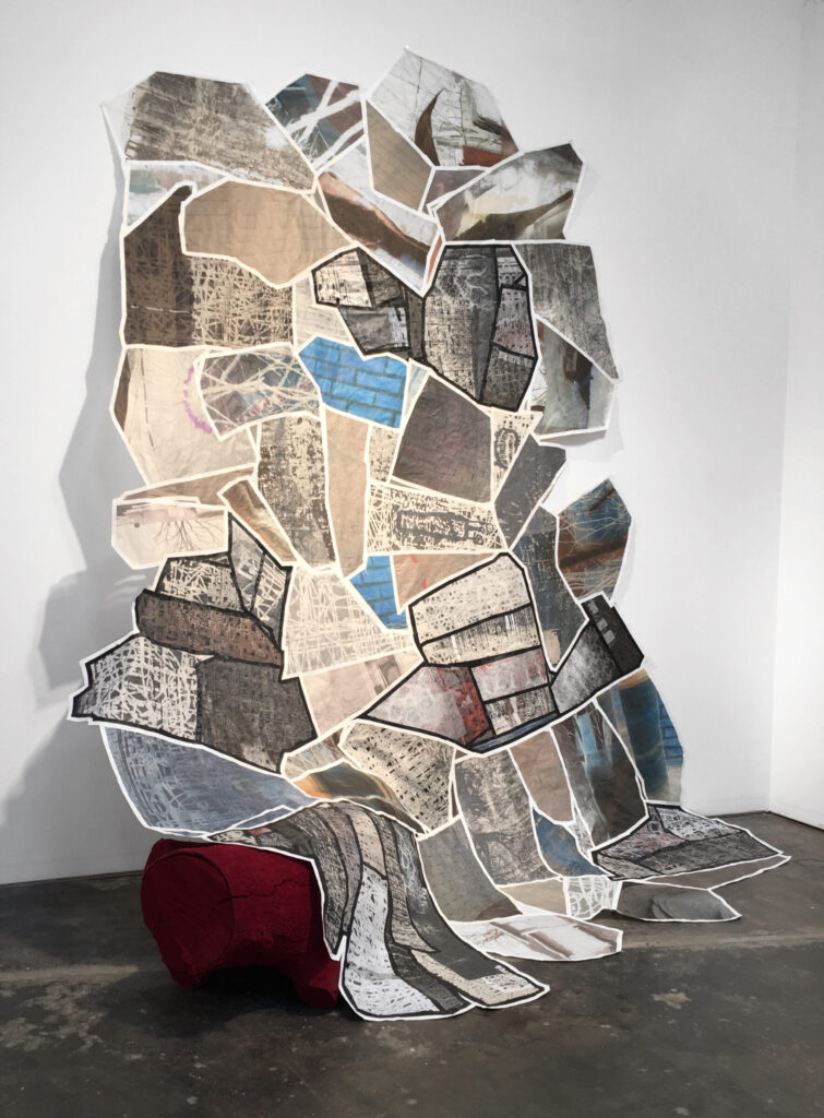 Disparate sources for imagery and ideas yield disparate content. However, through my manipulation, that is my formal and material reaction, the disparate coalesces. Artmaking promotes shape shifting, thus enabling the freedom to flow between various disciplines, concepts and materials. Through art/printmaking, I always discover some new truth or narrative. Intuitive formal decisions impart or create meaning. I feel my role is that of a facilitator within a constant collaboration with the inanimate elements of print media. For me, printmaking is more than materials; it is a way of viewing the world. As a resident of a multi-layered world in which little is as it seems and information is coded (even when it’s not), printmaking is my decoder ring.