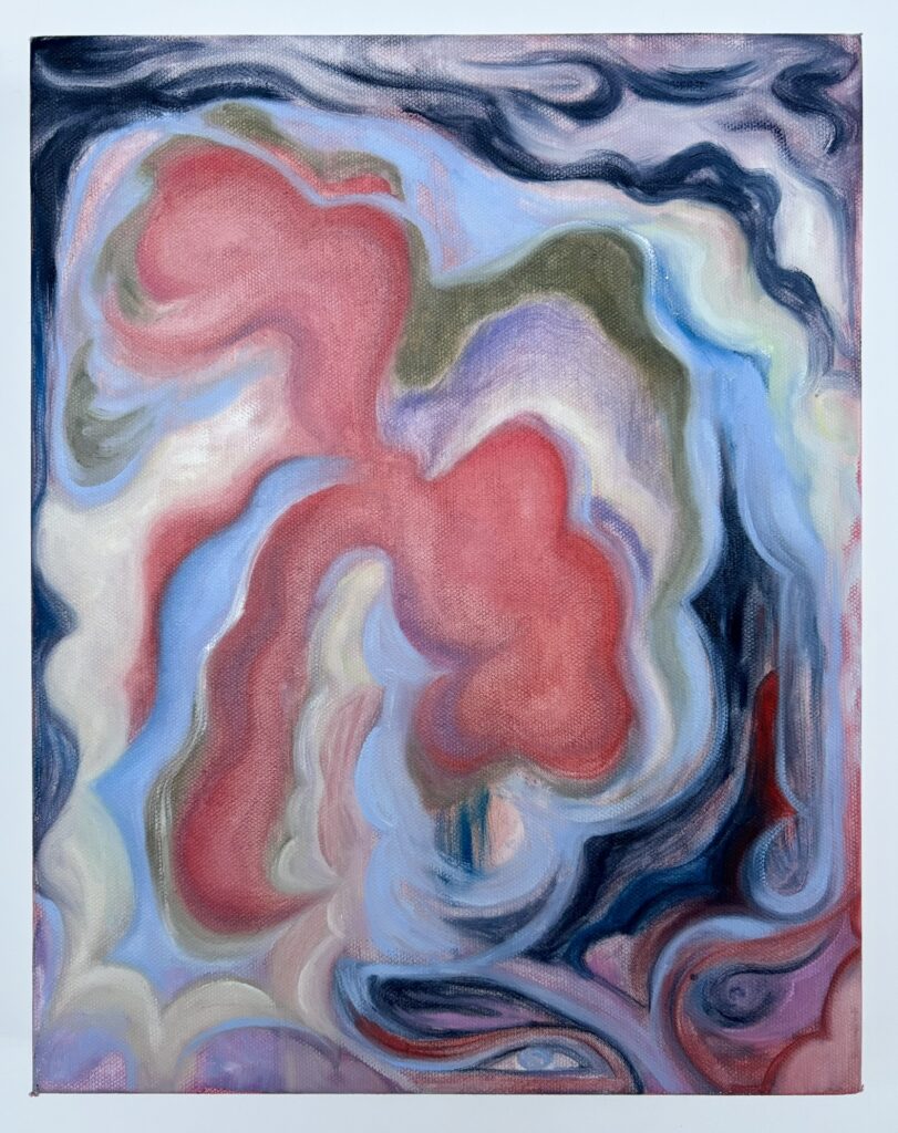 I draw much of my inspiration from the blend of urban sprawl and natural beauty. The coexistence of these two forces demonstrates a complex, sometimes tension-filled harmony. The ceaseless expansion of urban environments collides with the organic unpredictability of the natural world. In my work, I seek to reflect on this collision and how it relates to the human condition. My vibrant, abstract compositions evoke the spaces of our physical environments and the sensations of our inner worlds. Swirling brushstrokes create landscapes that are alive and ever-evolving, recalling the turbulence and unpredictability found in natural and built environments, and within the complexities of the human experience. Through painting, I am less concerned with representing the physical world and more interested in capturing the essence of our inner experiences, fleeting moments, and the intangible forces that shape our lives. My expressive oil paintings often feature forms within the confines of a maximalist environment. These forms twist and turn into each other, pushing the boundaries of and adapting to the spaces in which they exist, sometimes becoming fully engulfed by their environments. These landscapes are as mutable and fluid as the emotions and experiences they represent. Figurative elements alluding to the human form convey a narrative evoking personal themes of loss and growth, vulnerability, isolation, and the drive to persevere, ultimately celebrating the resilience of the human spirit.
