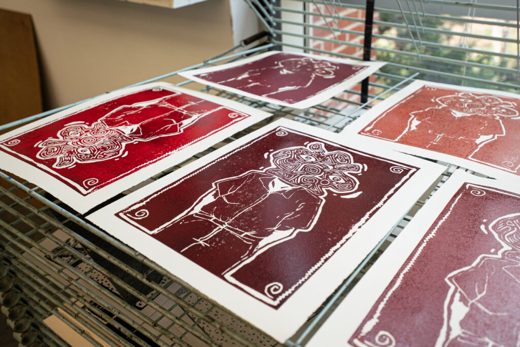 Delve into the exciting, overlapping worlds of printmaking and book arts. In this course, open to students of all levels, we will learn to make our own artist books bound and printed with two types of prints: woodcut and linocut. We’ll transfer your drawings​ to create hand carved woodblocks and hand printed linoleum blocks as editions via printing presses. These prints will become pages within a variety of book structures. Students can expect to carve and print approximately 10-12 blocks (each approximately 4”x6”) and construct at least 4-5 artist books and journals. Join us for this one of a kind class!