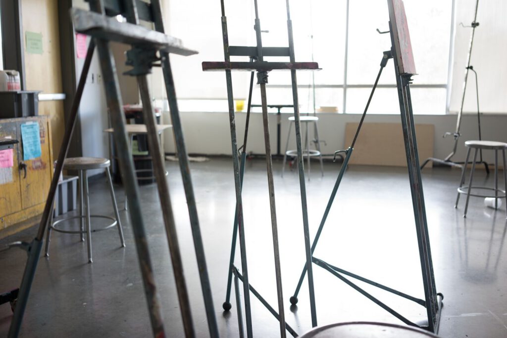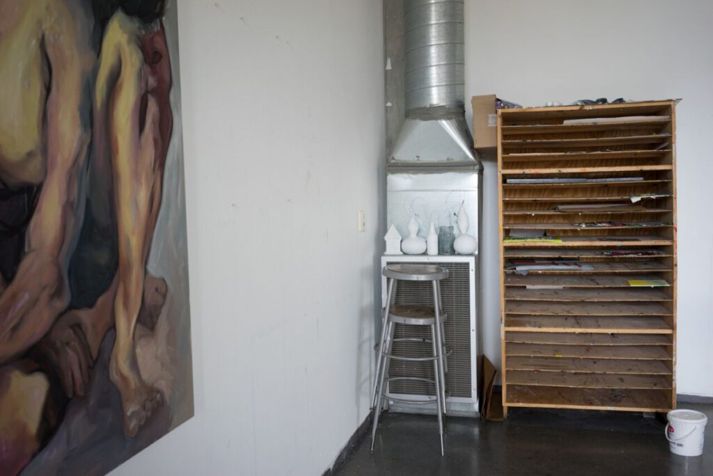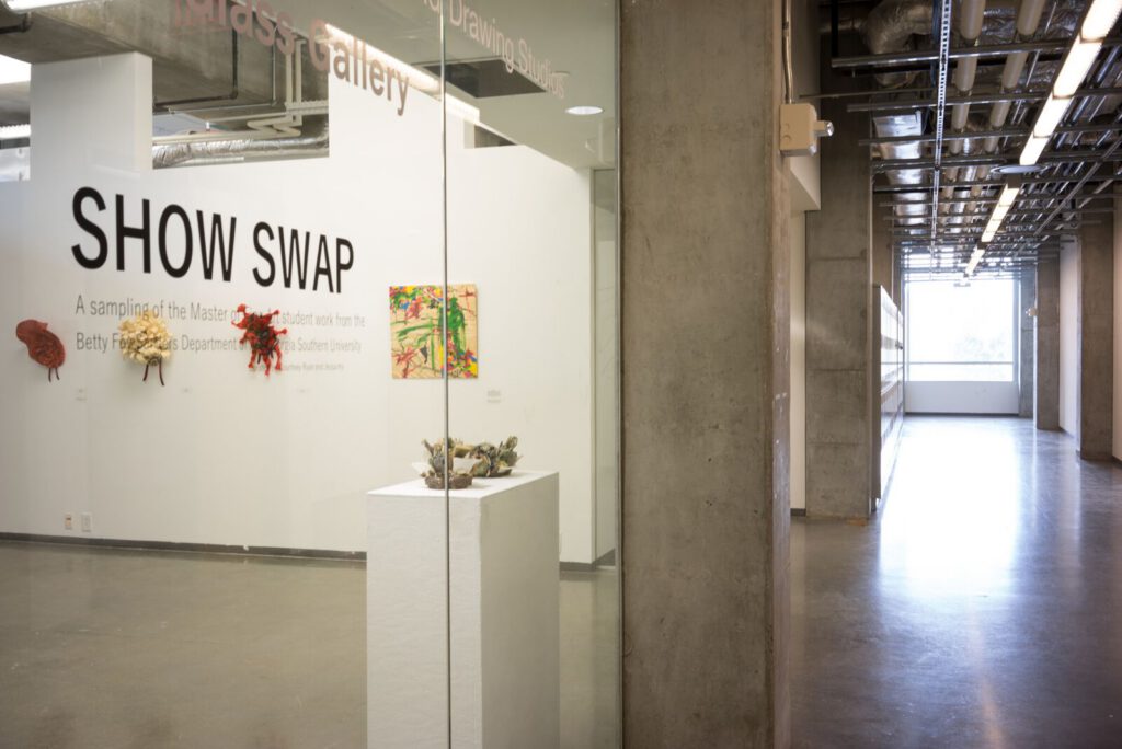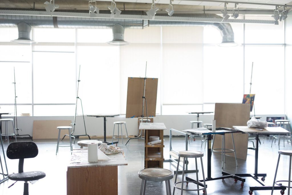 Community is crucial to the success of students in a graduate program. The 3rd floor graduate studios are clustered together, creating an atmosphere of comradery and dialogue. 24-hour access allows students flexible working hours. Each studio is self-contained with a door and four walls (some with floor-to-ceiling windows). Proximate faculty and undergraduate studios encourage discourse throughout the area. In addition, the nearby Glass Gallery space is available for MFA students working in any discipline to curate exhibitions and show work.