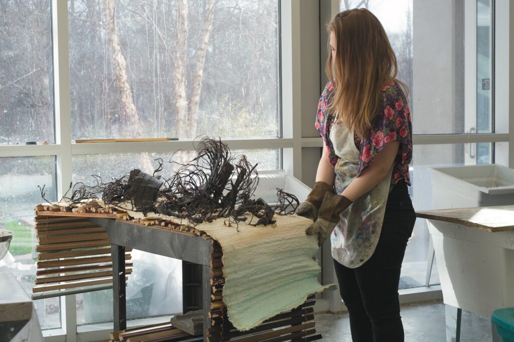 Students pursuing the BFA degree enter the School of Art as Intended Art majors and will apply to an area of concentration via the School’s area portfolio review in the second year of study. In most studio programs, students are required to present an exhibition or final portfolio that serves as a capstone experience before graduation, demonstrating their achievement in developing a mature and cohesive body of work.