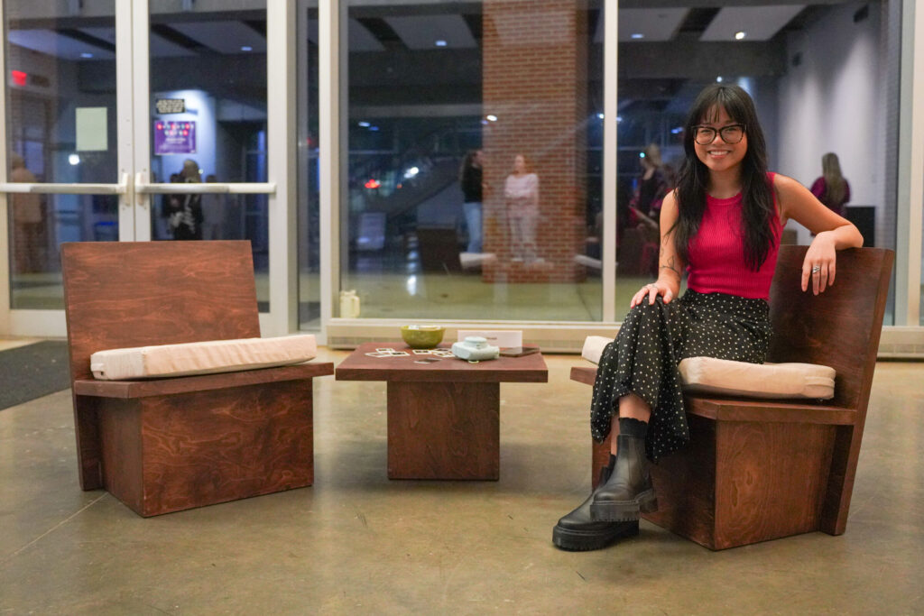 Student posing with furniture project. (Photo/Sidney Chansamone, sid.chansa@gmail.com)
